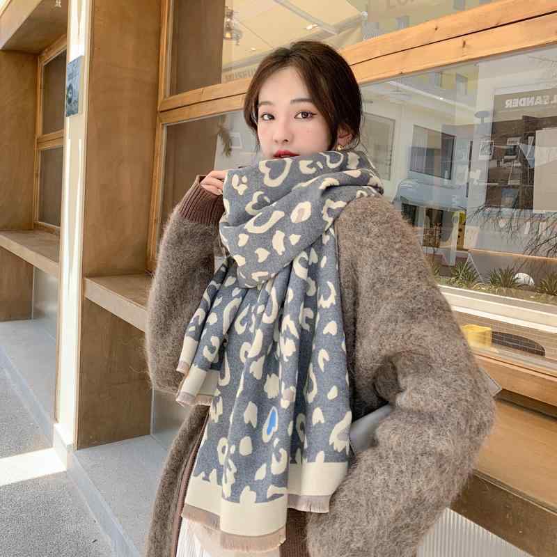 レディース ファッション 秋冬 ニット スカーフ マフラー 女性 韓国 ネックウォーマー かわいい おしゃれ 60×190 厚手 ロング ショール ヒョウ柄 アニマル柄