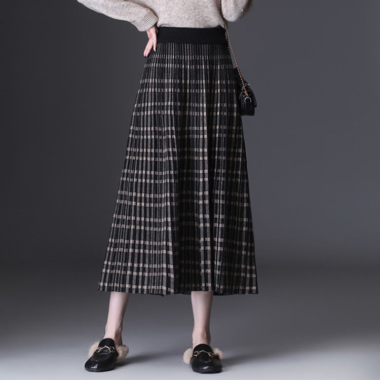スカート Aライン 春秋 レディース ミモレ丈 体型カバー ニット 大人 パーティー 格子 結婚式 二次会 同窓会 お出かけ ハイウェスト ストレッチ 着やせ チェック フリーサイズ BQ-087