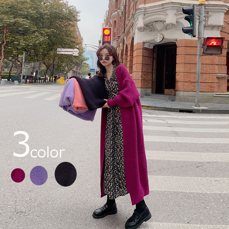 コート ニット レデイース 春秋 長袖 トップス おしゃれ 可愛い カジュアル お出かけ ロング丈 体型カバー 同窓会 普段着 着やせ ゆったり フリーサイズ -265