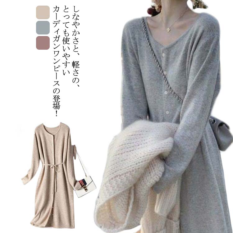 ロングワンピース ニットワンピース 長袖ワンピース 長袖 秋 Vネック 春秋 セーター 羽織 ワンピ アウター マキシ丈 ロング丈 ロングカットソーカーディガン