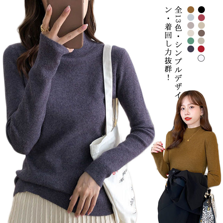 ニット インナー シャツ 無地 綿 ネックカットソー ロン 無地カットソー タートルネッ ハイネック レディース