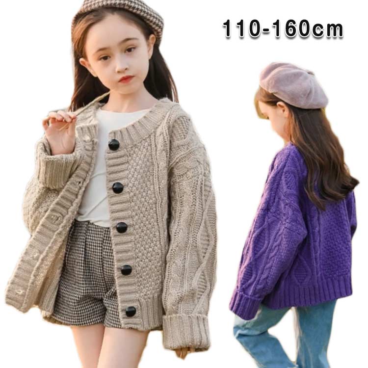ケーブルニット カーディガン 羽織り 長袖 シンプル カジュアル ファッション 無地キッズ ベビー マタニティ キッズファッション トップス カーディガン ボレロ
