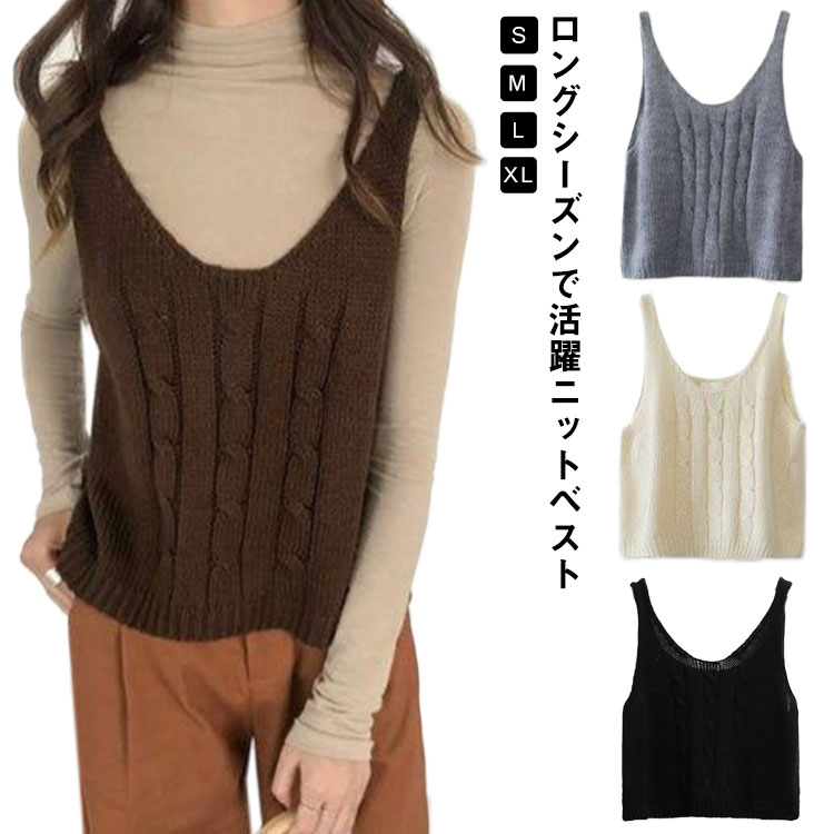 ニットベスト レディース ショート ニット ベスト スリム ニットセーター 無地 シンプル 丸首 韓国風