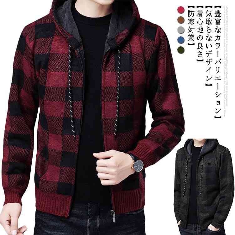 カーディガン チェック柄 ニットカーディガン ゆったり アウター 長袖 ショート丈メンズファッション トップス カーディガン