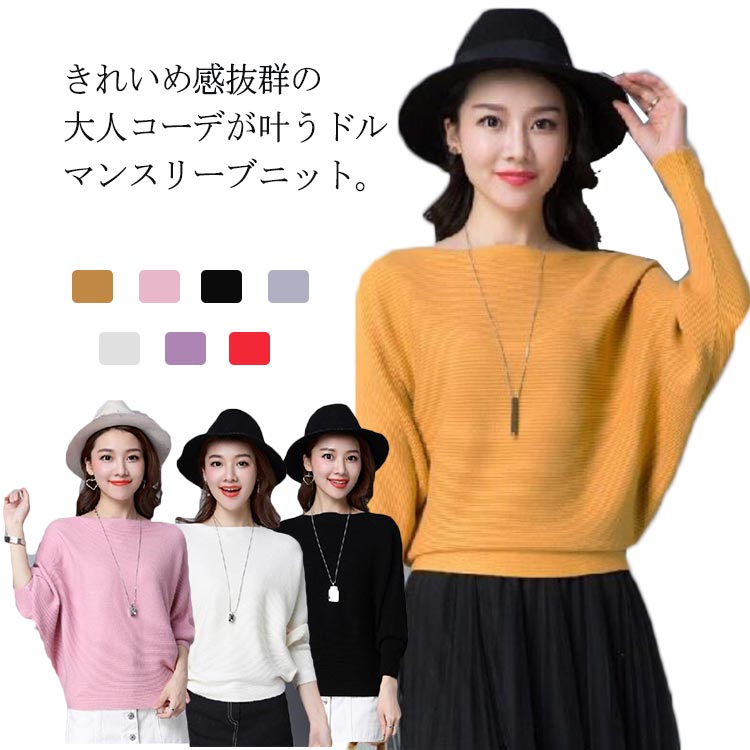 ニット レディース ボートネック 長袖 ドルマンスリーブ 春 秋冬レディースファッション トップス ニット セーター セーター
