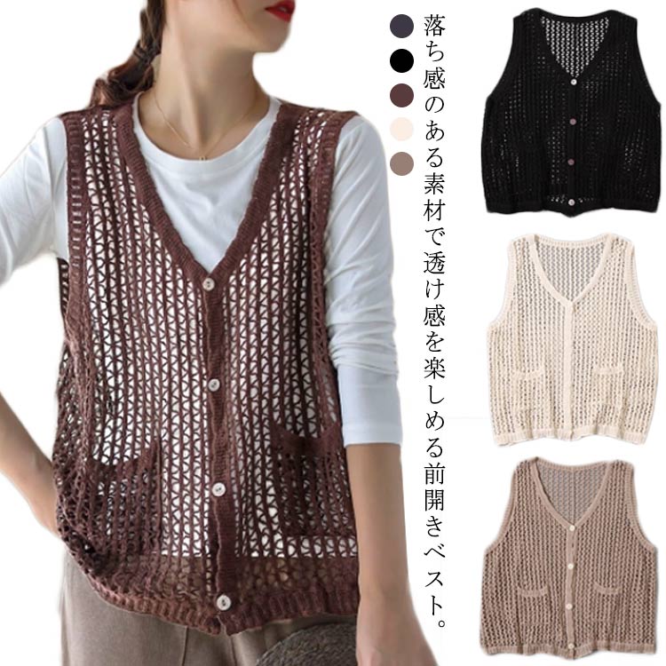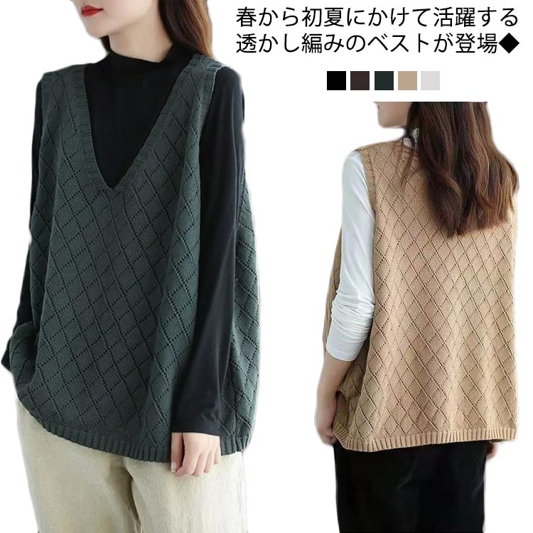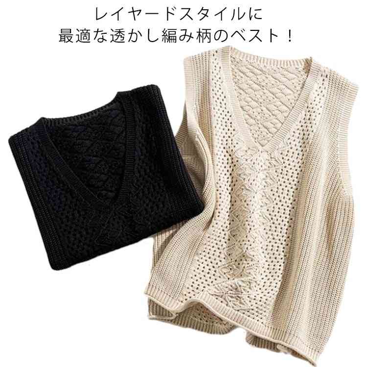 ニットベスト 透かし編み レイヤード 重ね着 Vネック 透け感 トップス 春 夏レディースファッション トップス ベスト ジレ