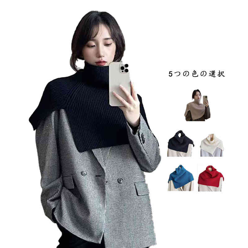 ニットストール ネックウォーマー ケープ ベスト トップス 巻物 スヌード ニットスヌード ハイネック ショート丈 ニット セーター レイヤード 重ね着