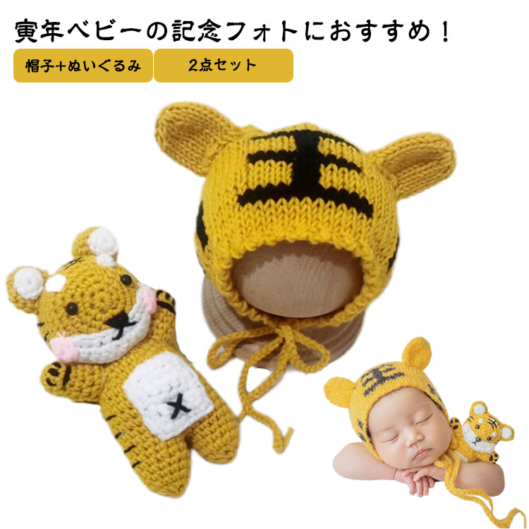 月齢フォト ベビー 2022年 干支 寅年 新生児 トラさんコスチューム 年賀状作成 100日記念キッズ ベビー マタニティ キッズファッション 帽子 ニット帽
