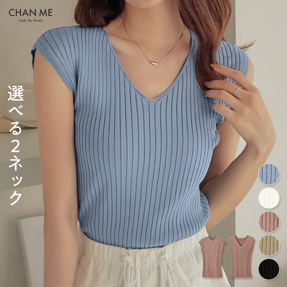 フレンチスリーブ ニット リブニット トップス レディース きれいめ ノースリーブ ハイネック Vネック 半袖 フレンチスリーブ ニット リブ ハイネック 韓国ファッション 春 夏 24SS