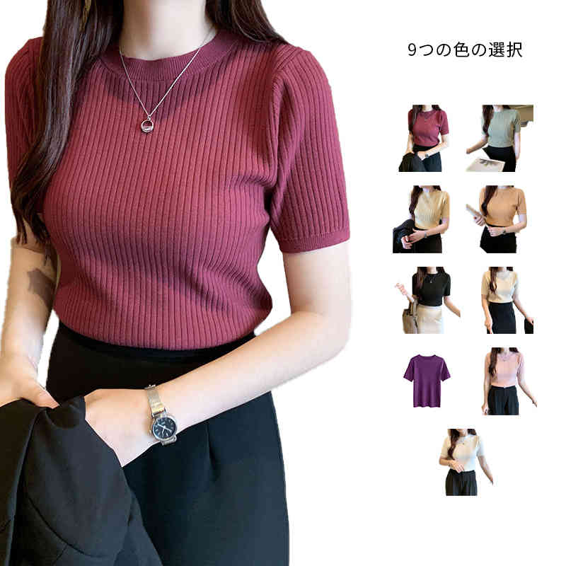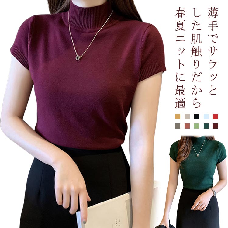 ハーフタートルネック トップス プチプラ 半袖ニット 薄手 サマーニット Tシャツ ママコーデ 夏 プルオーバー セーター オフィス カジュアル 春 30代 デイリー使い 無地 着回し 20代 レディ