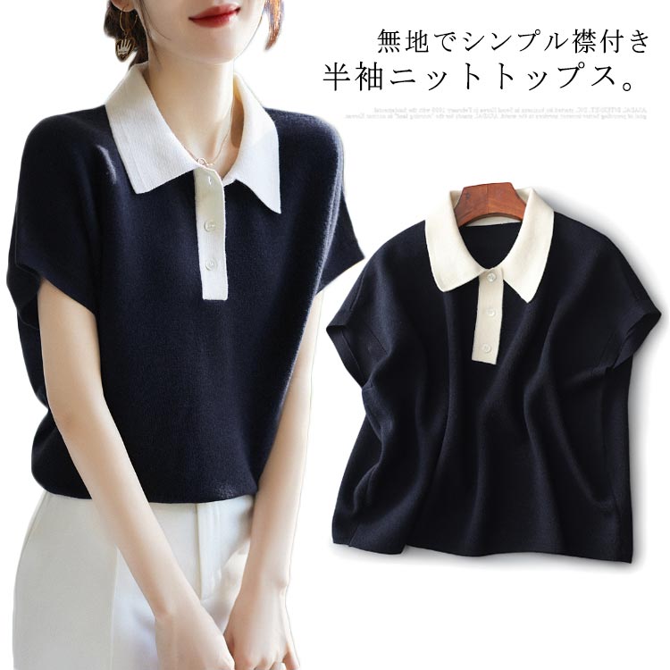 キーネック サマーニット 半袖 トップス レディース 襟付き ポロ レディースレディースファッション トップス ニット セーター その他