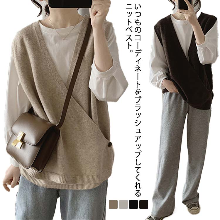 レディース ニットベスト トップス ネック レイヤードベスト 裾リブ 春 夏 秋 サマー ベストレディースファッション トップス ベスト ジレ