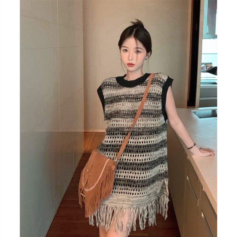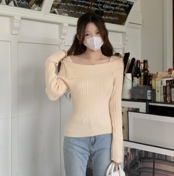 ♪3色展開♪カットソーニットトップス無地着やせ効果スリムガールズストリートシンプル長袖個性的かわいい韓国