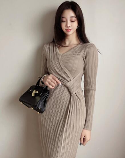 ワンピース 結婚式 着痩せ おしゃれ ワンピ セクシーワンピース ニットロング丈 長袖大人 スタイル 上品 韓国 結婚式 二次会 パーティー 発表会 お呼ばれ同窓会 謝恩会