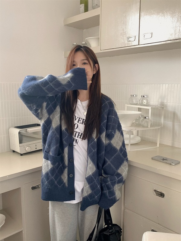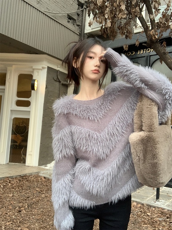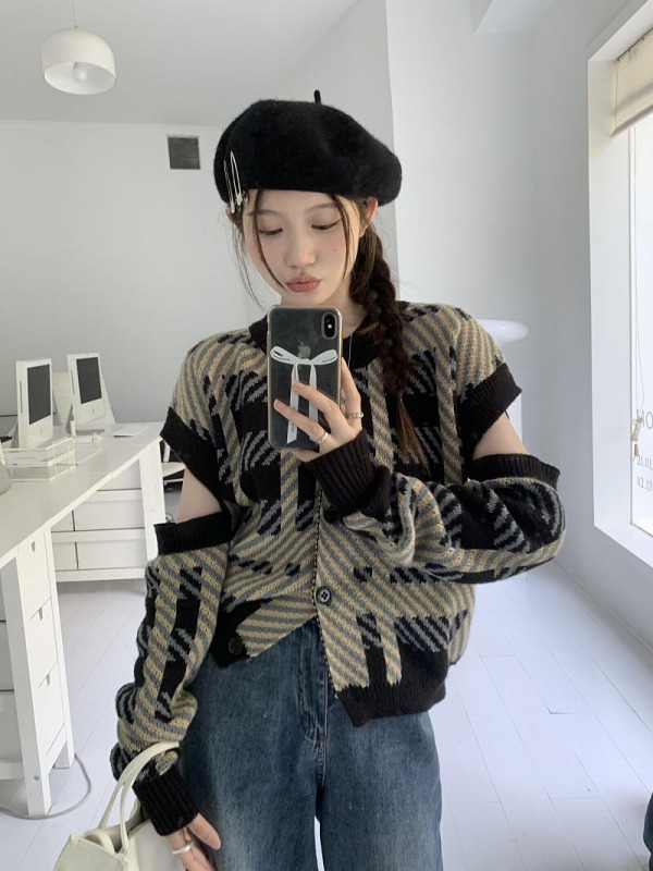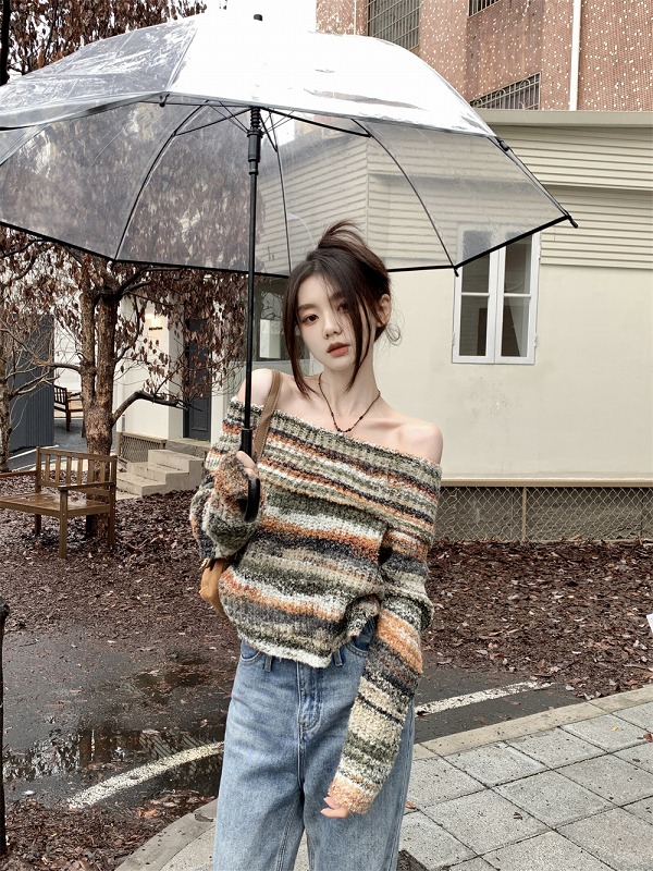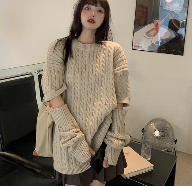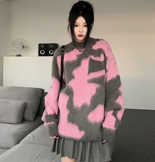 ニット セーター 長袖 切り替え 体型カバー カットソー ヴィンテージ風 レトロ調 原宿系ファッション 韓国風ダンス 衣装 ヒップホップ 個性 奇抜 かわいい 青文字系 トップス レディ