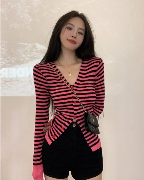 ボーダーレディース トップス ニット トップスカットソーカーディガン 長袖 スリム着回し きれいめ カジュアル女性ファッション大人可愛い 秋物 秋新作