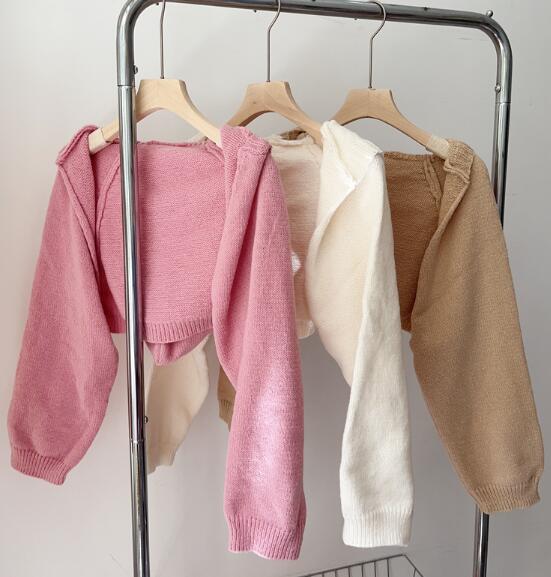 2カラースリットニットトップス長袖大きい大きめビッグカットソー長めベージュローズレディースガールズおしゃれかわいいダンス衣装ヒップホップ韓国シンプルレトロオフショルダーセクシー