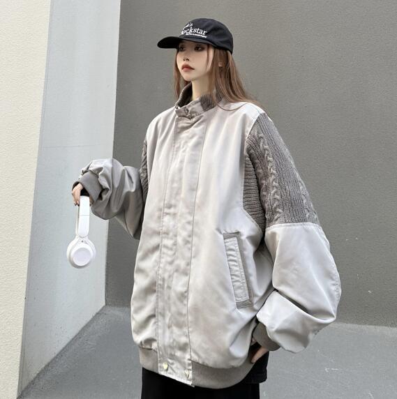 ♪M~2XL展開♪切替ニットアウターブルゾンジャケットジャンパーシンプルビッグ大きいサイズヒップホップHIPHOPレディースメンズガールズカジュアル韓国奇抜派手