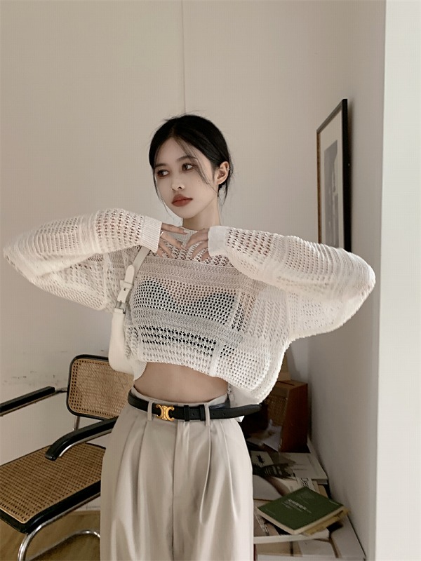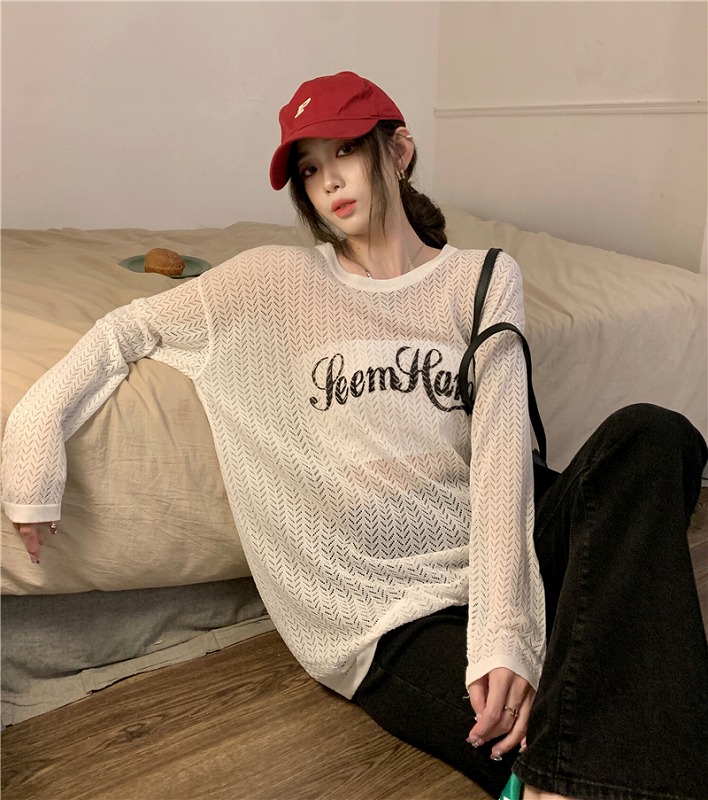 全2色 ニット セーター 長袖 透け編み 薄手 体型カバー カットソー 原宿系ファッション 韓国風 ダンス 衣装 ダンサー ヒップホップ 個性 奇抜 かわいい 青文字系 トップス レディ