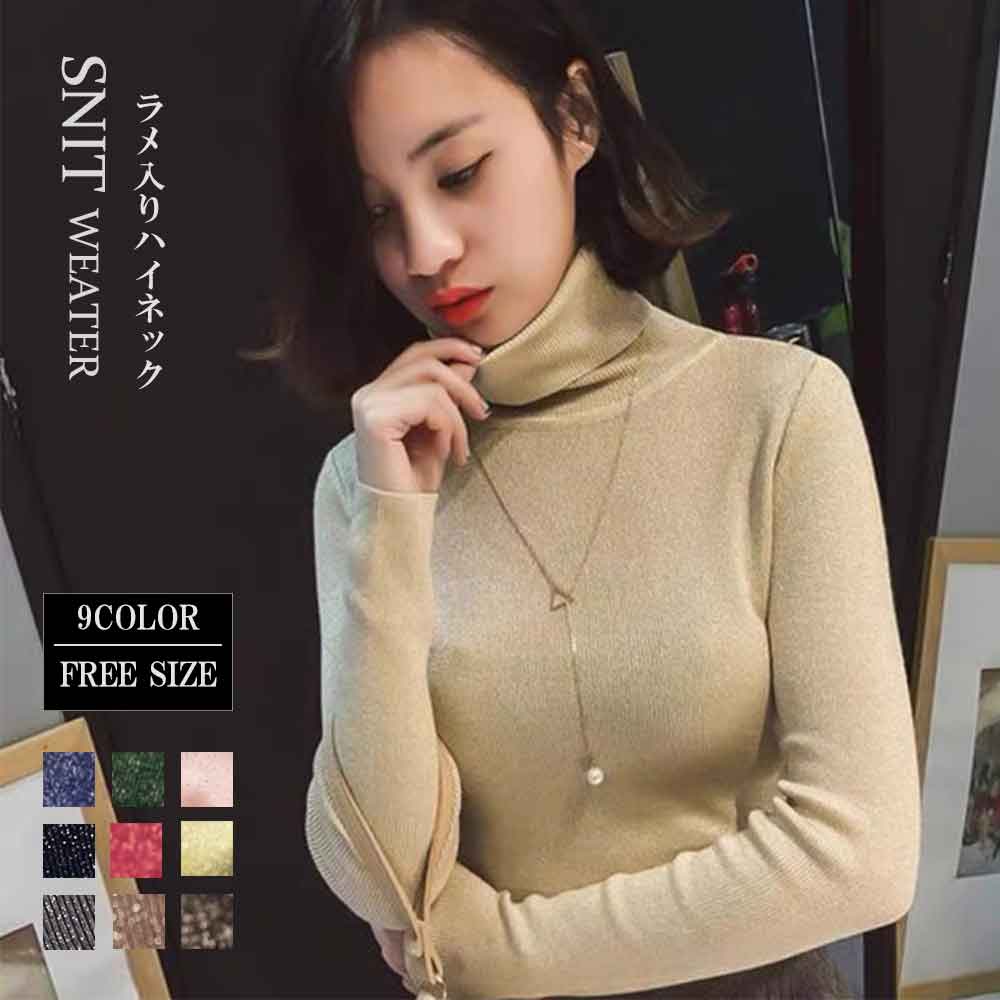 ニットセーター ハイネック ニット タートルネックセーター 長袖tシャツ トレーナー ラメ入り セクシー お洒落 きれいめ タイト ストレッチ 暖かい 秋 冬