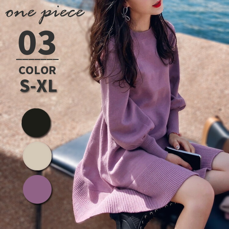 ワンピース ニット 秋冬 クルーネック シンプル 20代 30代 40代レディースファッション ワンピース