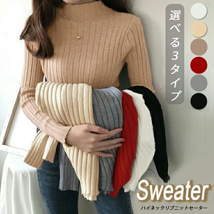 選べる3タイプ 12カラー ハイネックリブニットセーター レディーストップス レディースセーター レディースニット 細身 太リブ 細リブ ボタン 長袖
