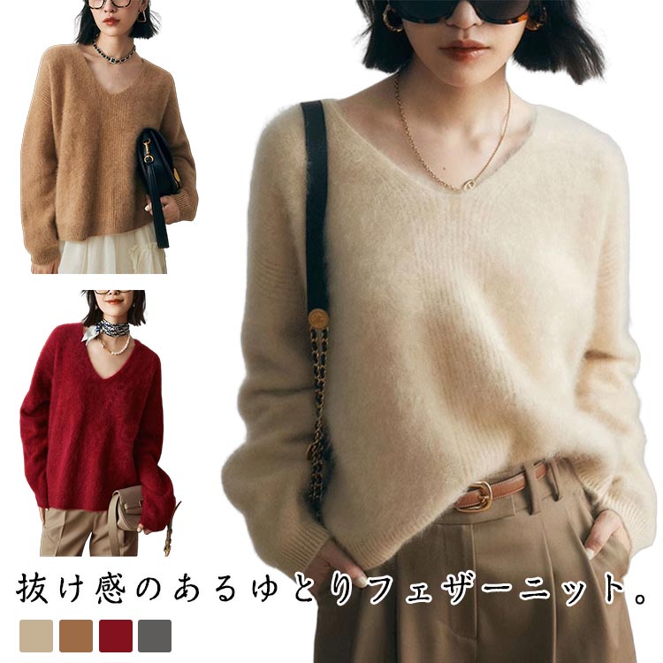 ふんわり可愛いフェザーニット 着心地よい ニットセーター 柔らかい ニットトップス 体型カバー 着痩せ ショート丈 おしゃれ