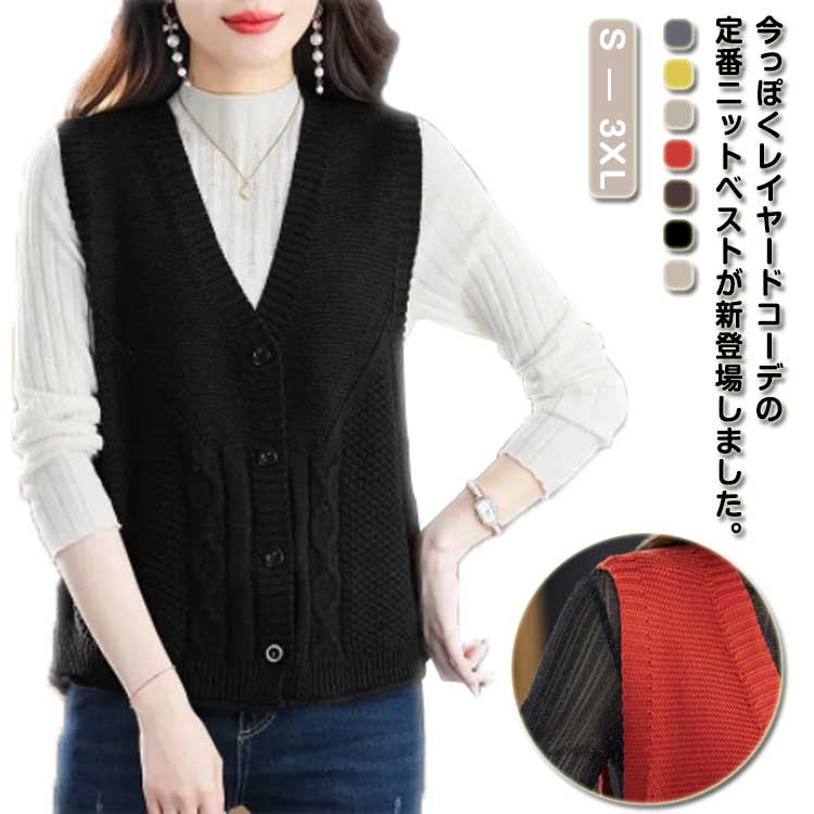ニットベスト レディース 前開き Vネック 無地 トップス セーター ノースリーブ 秋 冬 春レディースファッション トップス ベスト ジレ
