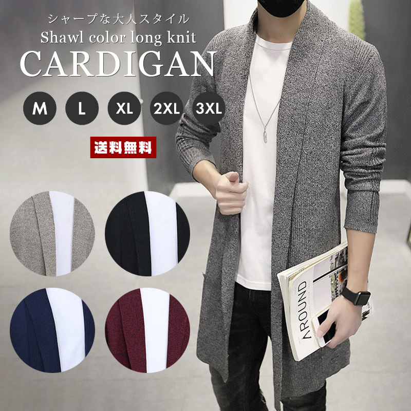 シャープに羽織れるロングニットメンズファッション トップス カーディガン