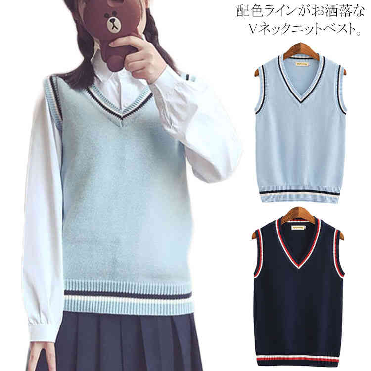 スクール ニットベスト 制服 ノースリーブ ニットトップス プルオーバー セーター 学生レディースファッション トップス ベスト ジレ